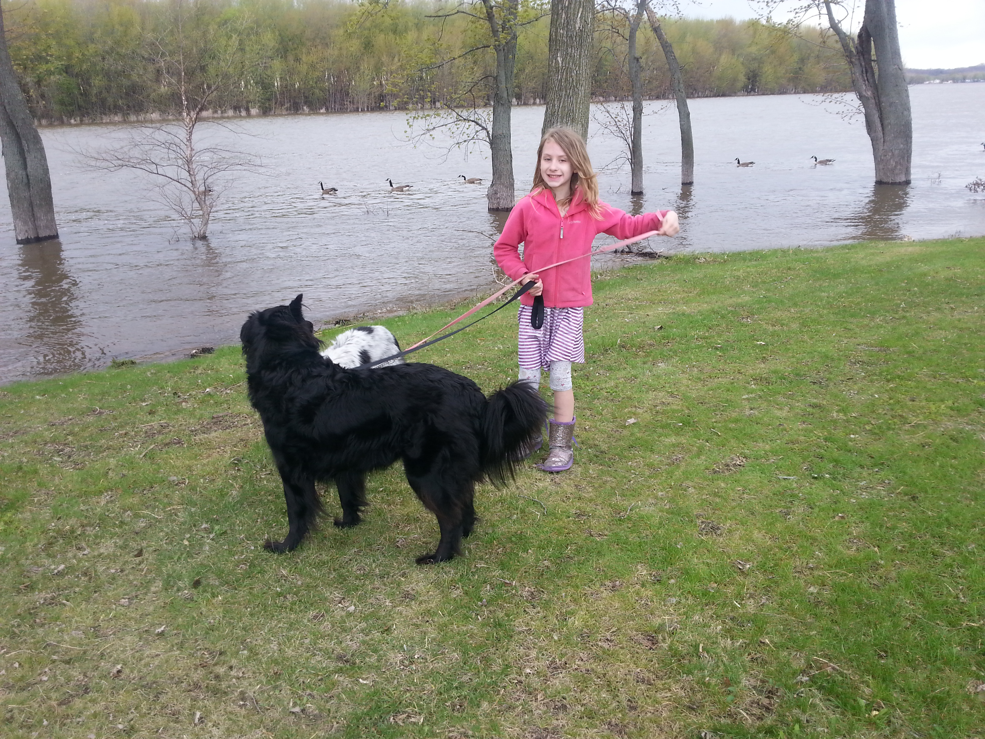 Lily and I took the dogs for a walk by the river after school. The river is flooded which Lily was very interested in. The dogs were so happy to be out on a walk!