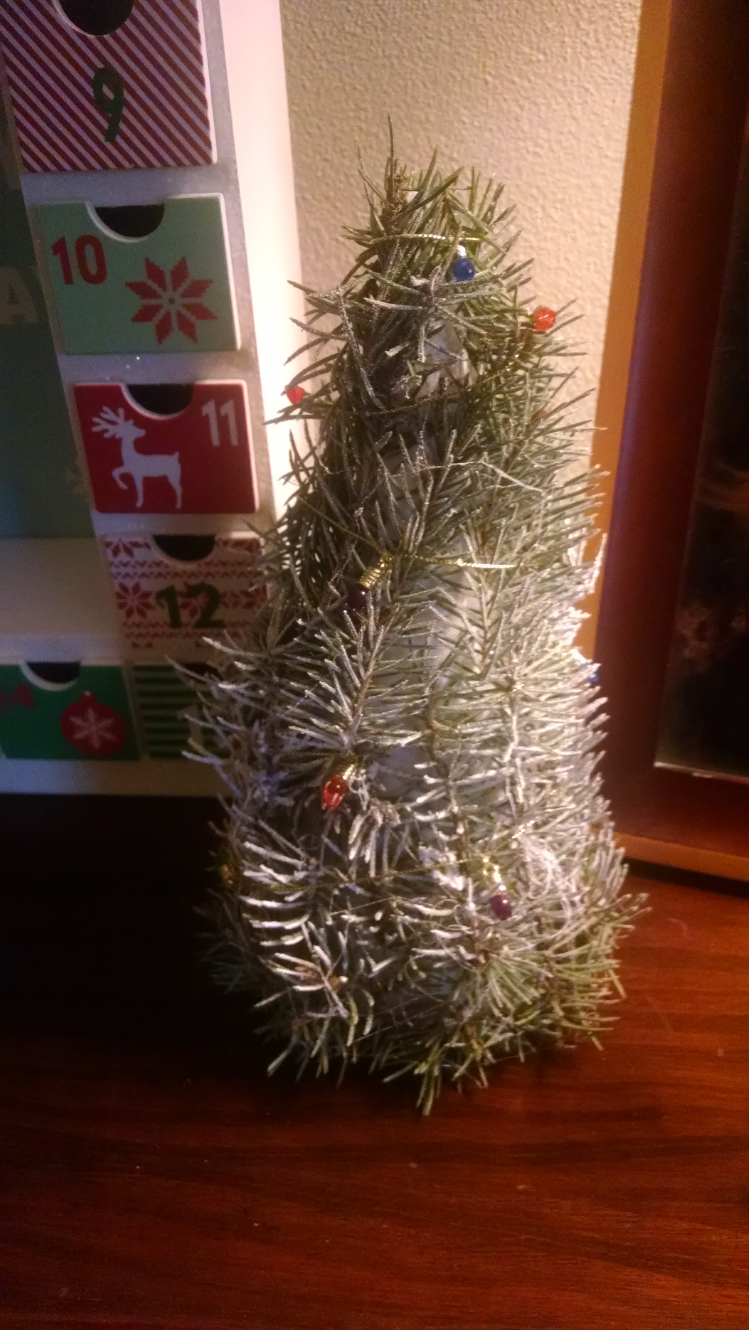 December 21, 2015 December 21, 2015 January 6, 2016 Tackett Comments 0 Comment Lily made this little Christmas tree with evergreen branches from the backyard and spray fake snow.